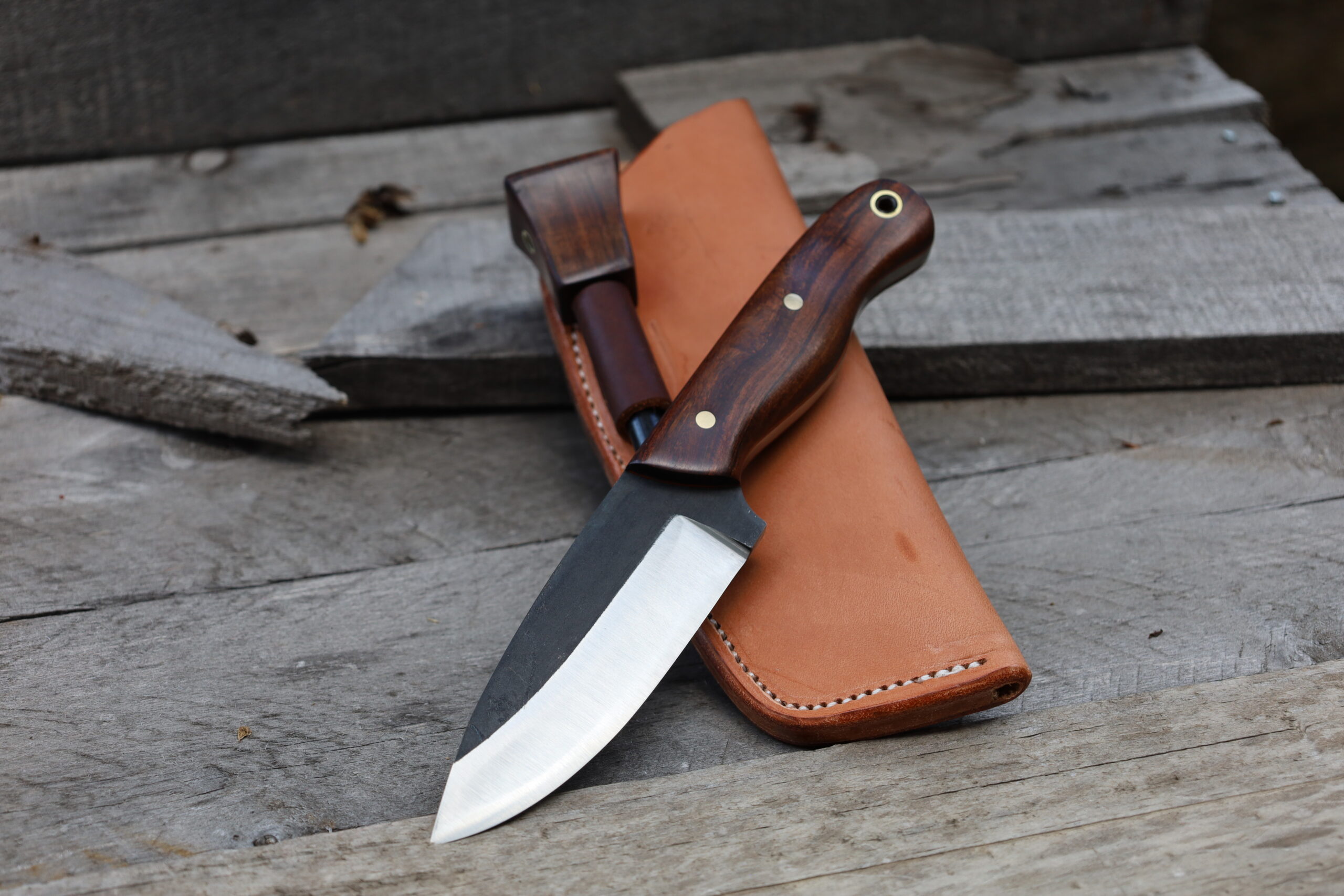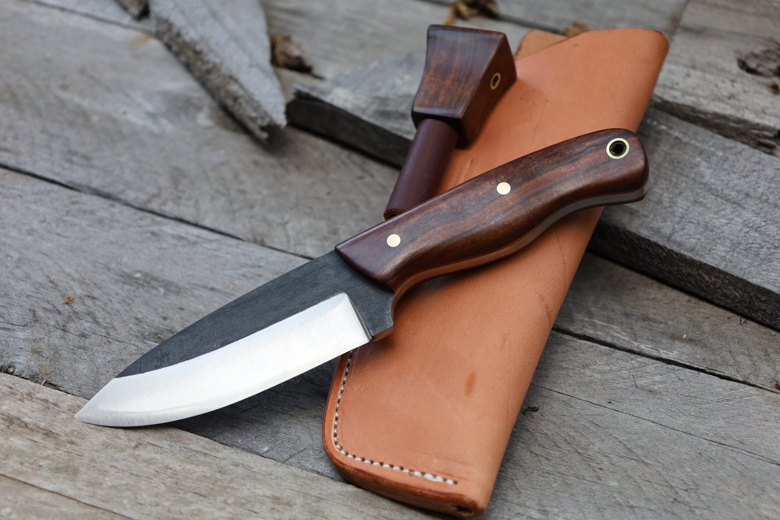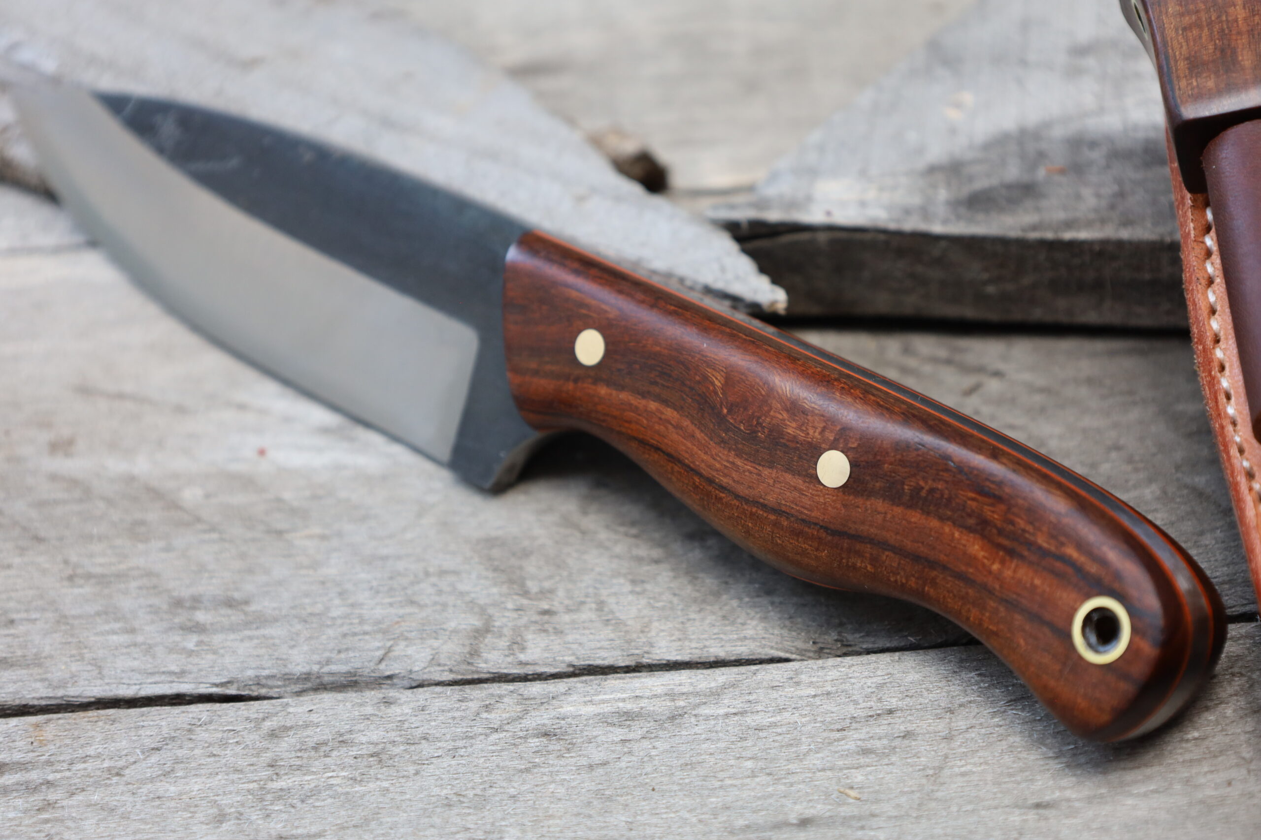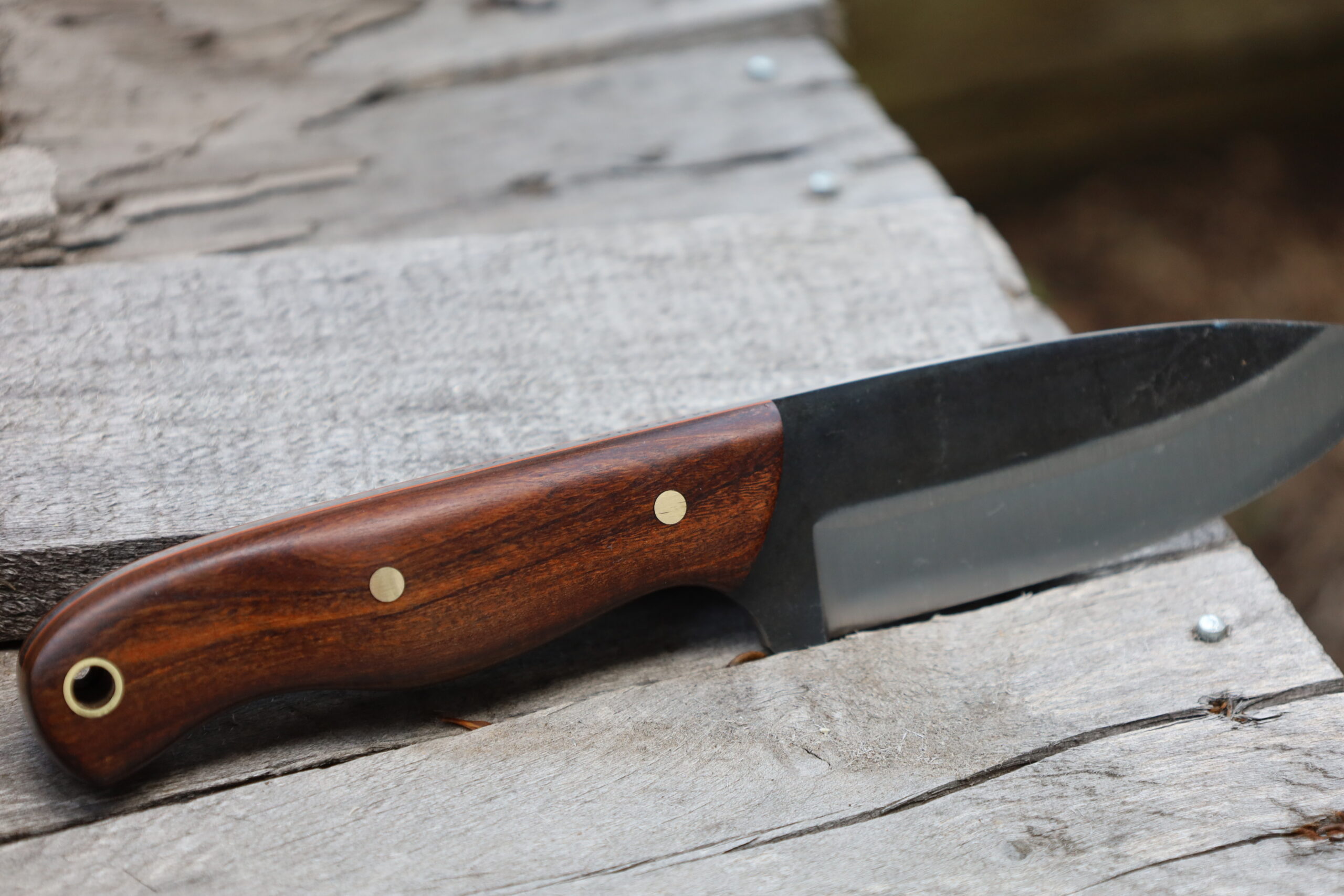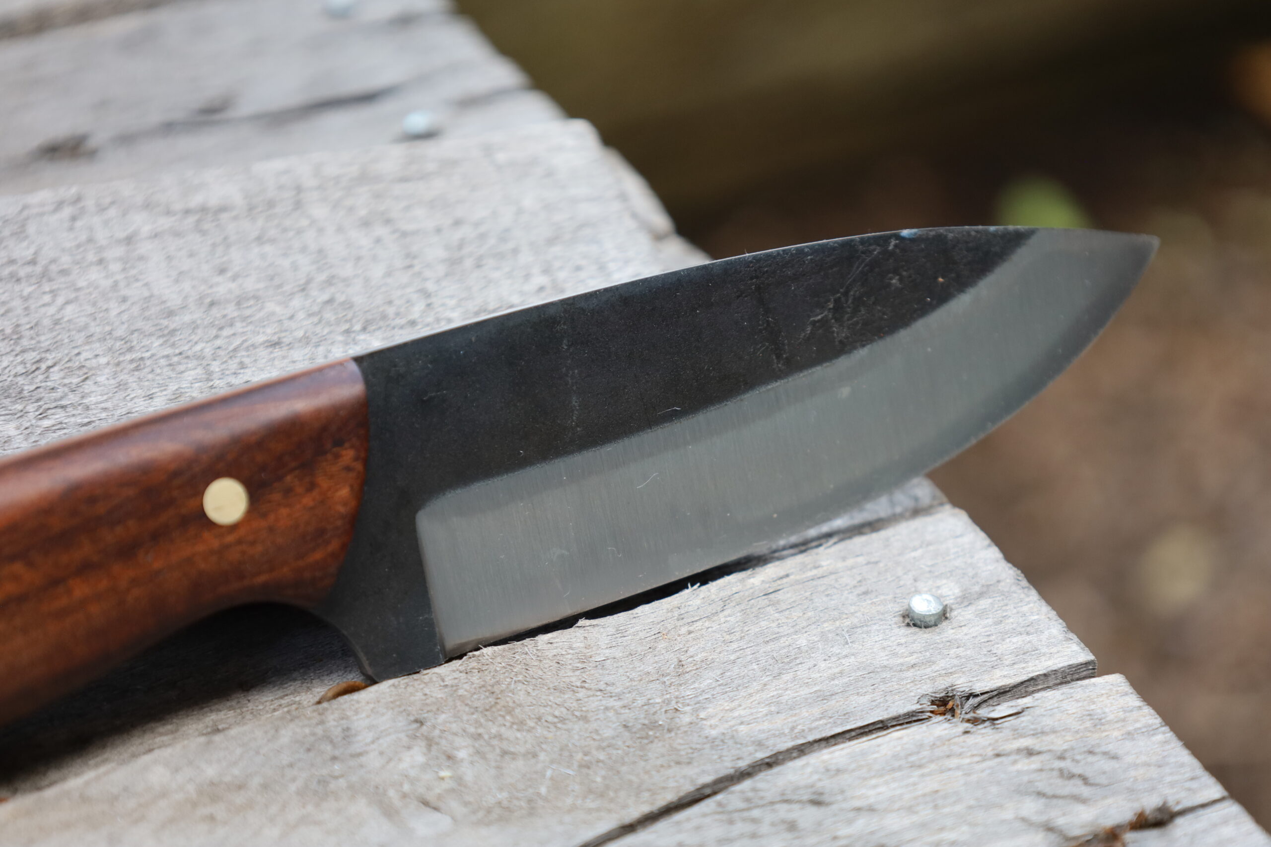 This knife was inspired by a couple of knives and is probably about the perfect size for an all round bushcraft knife. First inspiration came from the Architect Field Buddy 5.5 which was developed by the KnifeConnection in USA. It was also inspired by the Bark River Mini Aurora. I like the Field Buddy a lot but there are some things that I wanted to improve upon. The Field Buddy has a near full height grind and is traditionally manufactured from 1095 Carbon Steel. Whilst 1095 is a good steel, it lacks toughness, corrosion resistance and edge retention. The handle scales on the Field Buddy are removable and are a bit on the thin side. The Bark River Mini Aurora is a great shaped knife but the handle is too small. My version…the Medium Bushcraft is a stout general purpose bushcrafting knife that also doubles as a handy hunting and camp knife. It has enough belly to skin. As it is made of premium CPM Magnacut steel, the edge should last through many tasks without requiring a touchup.